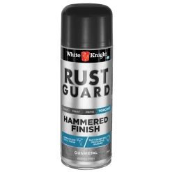 Rust Guard Hammered Finish by White Knight is an aerosol delivered, rust-inhibiting topcoat that transforms rust into a professional, long-lasting colour finish in one easy step.