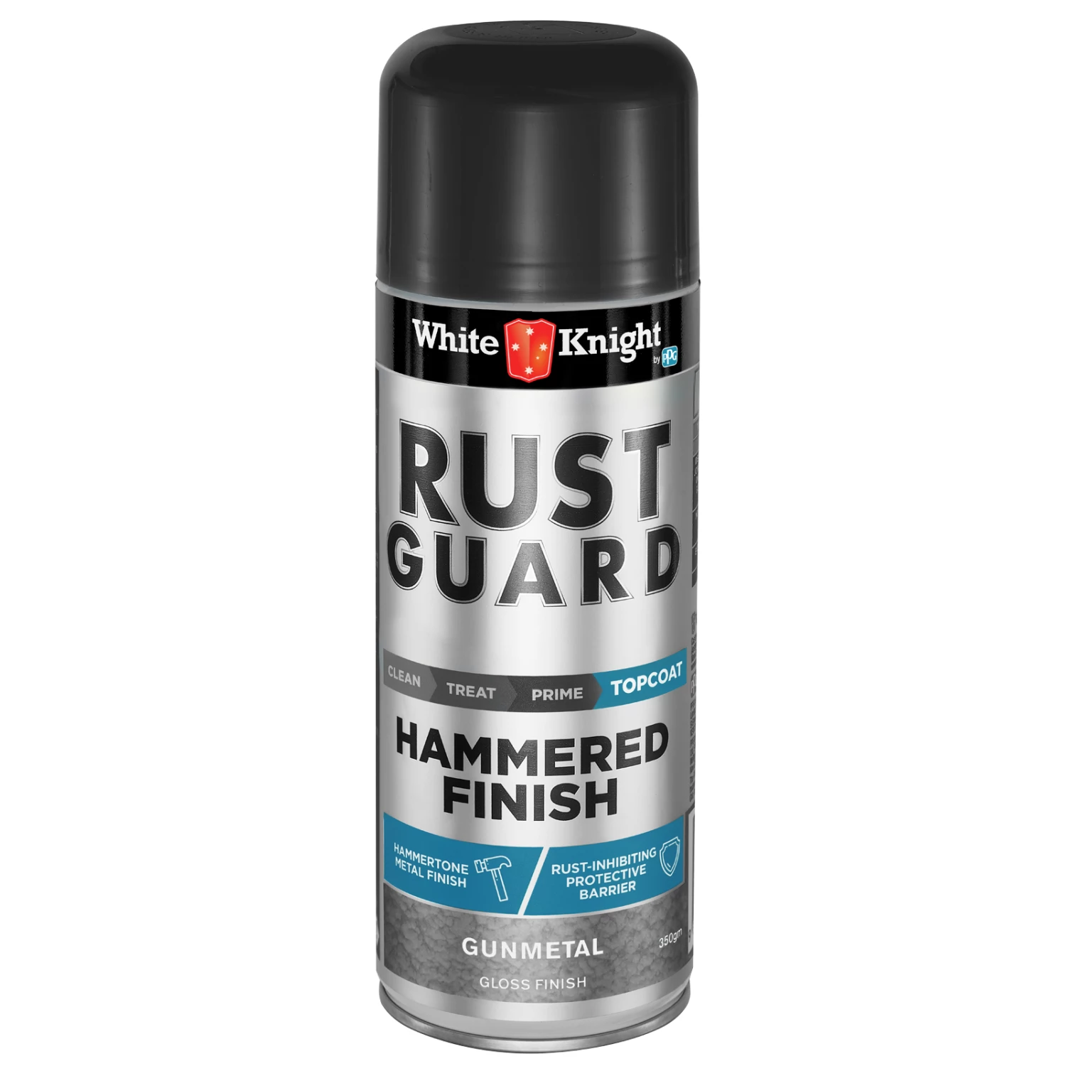 - Model Name: Rust Guard 350gm Gloss Charcoal Hammered Finish Spray Paint by White Knight
