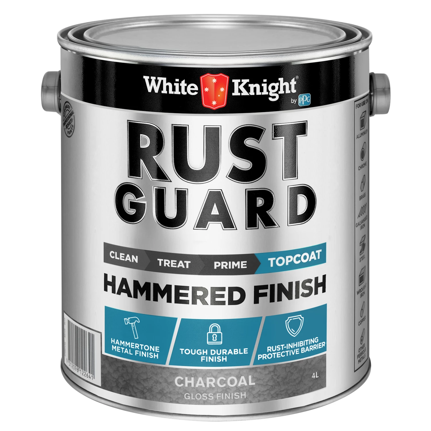 - Model Name: Rust Guard Hammered Finish 4L Gloss Charcoal paint by White Knight