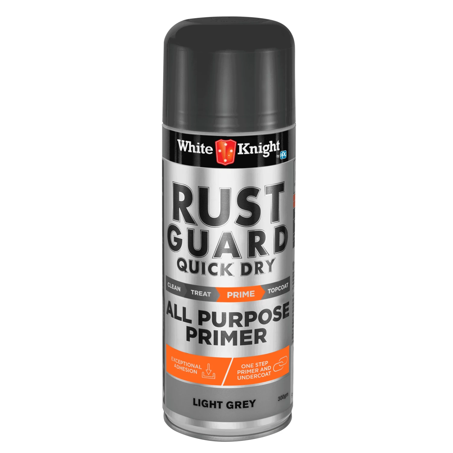 - Model Name: Rust Guard Quick Dry 300g Light Grey All Purpose Primer Spray Paint by White Knight